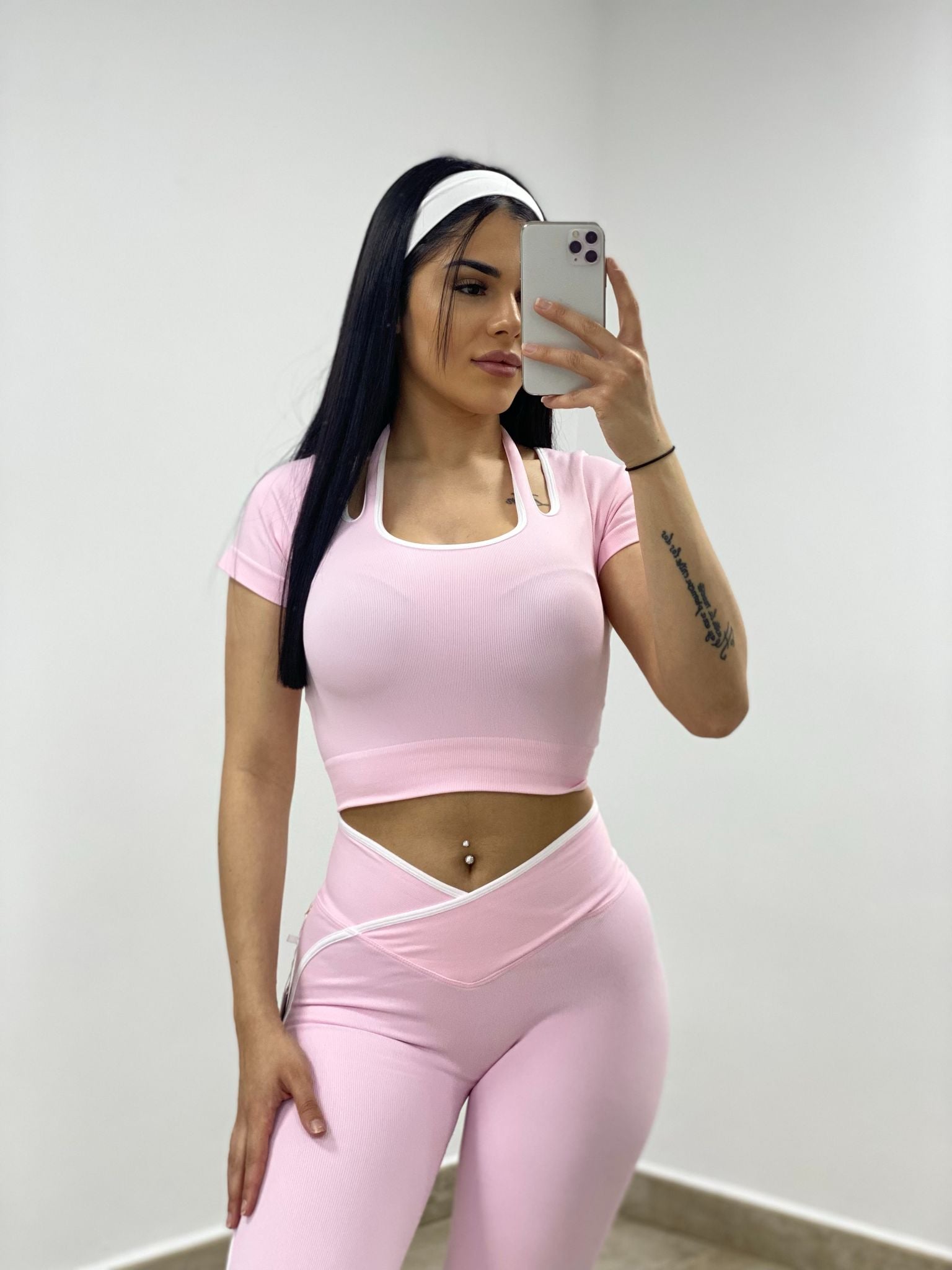 Conjunto deportivo de manga corta con fruncido en el glúteo.